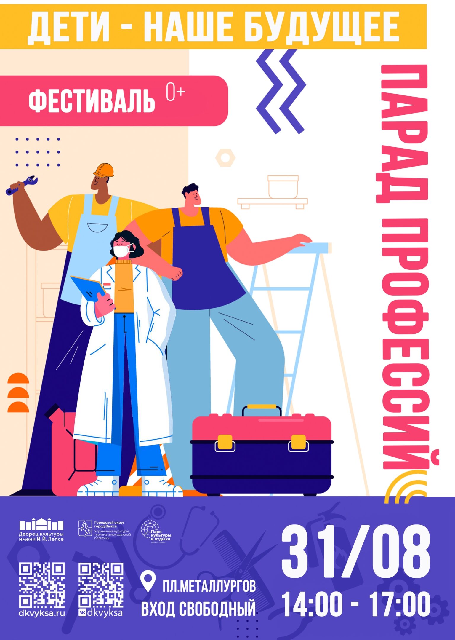 Дворец культуры им. И. И. Лепсе при поддержке администрации г.о.г. Выкса приглашает юных жителей города и их родителей принять участие в мероприятии «Парад профессий. Дети – наше будущее», которое состоится