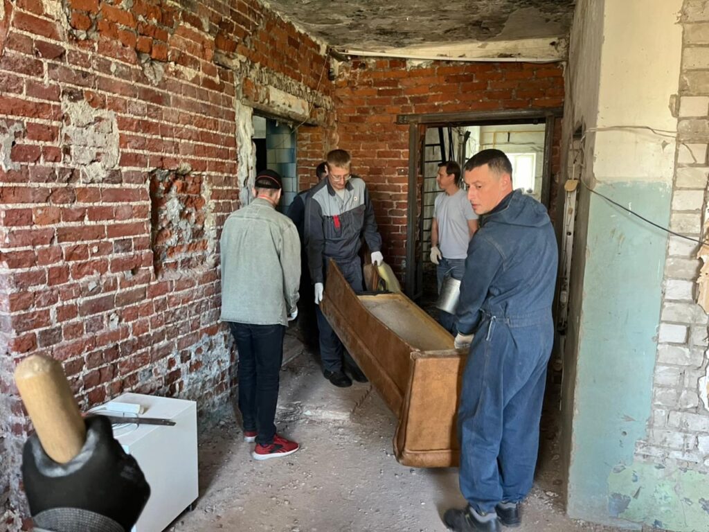 Вместо торта и свечей — помощь. Заводчане поехали в помещения будущего столярного цеха, чтобы принять участие в его подготовке к приему людей с инвалидностью. Центром «Созвездие» для них здесь будут организованы рабочие места.