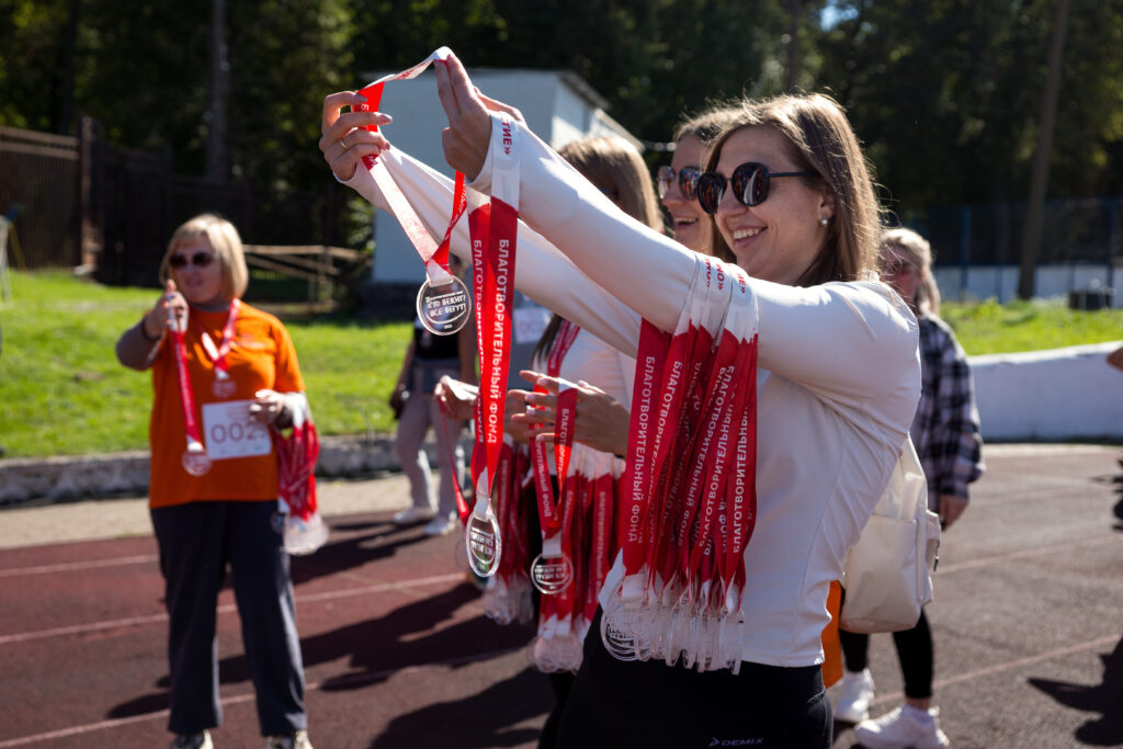 На старт на стадион «Металлург» вышли спортсмены-бегуны, любители-пешеходы, мамы с колясками, дети, бабушки с палками, дамы с собачками. Чтобы помочь юной выксунке, дружная команда преодолела дистанцию в два с половиной километра по городскому парку и площади. Все участники получили памятные медали из переработанного пластика и питьевую воду от партнёров акции – компаний «Аквалайф» и «Вода Адмиральская» (директор Сергей Кокорев). Среди партнеров забега также управление физкультуры и спорта городского округа, Дворец культуры имени И.И. Лепсе и парк культуры и отдыха.
