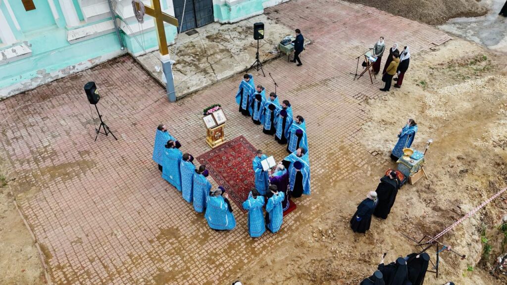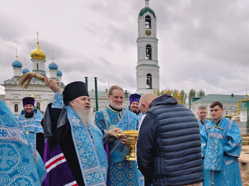 В Выксунском Иверском женском монастыре поднят крест на центральный купол восстанавливаемого Троицкого собора. Торжественный чин освящения прошел на площадке возле храма, его совершил епископ Выксунский и Павловский Гедеон в сослужении духовенства епархии.