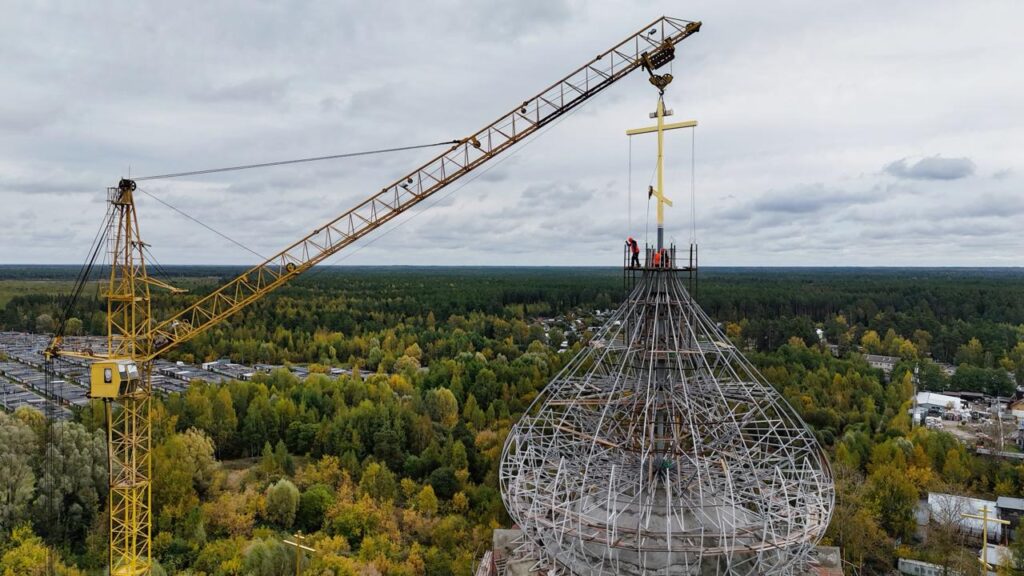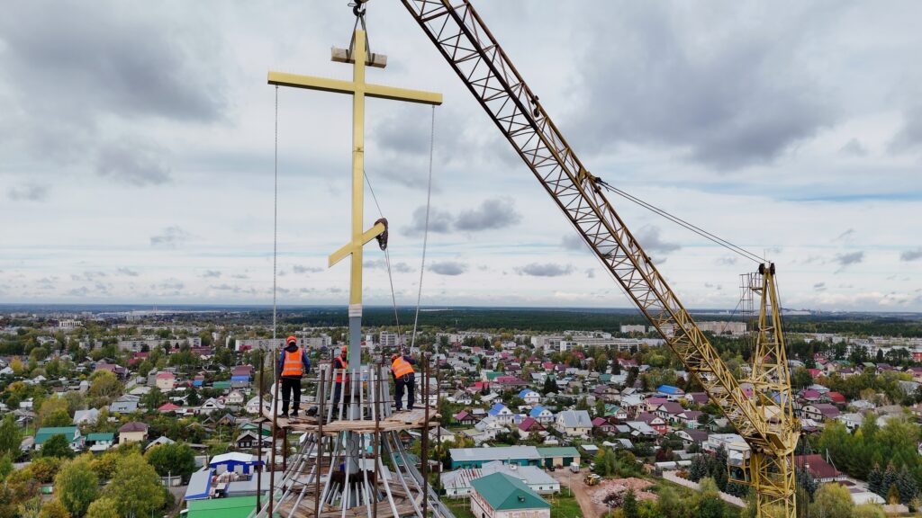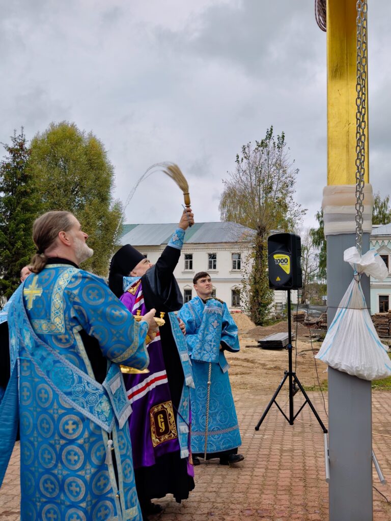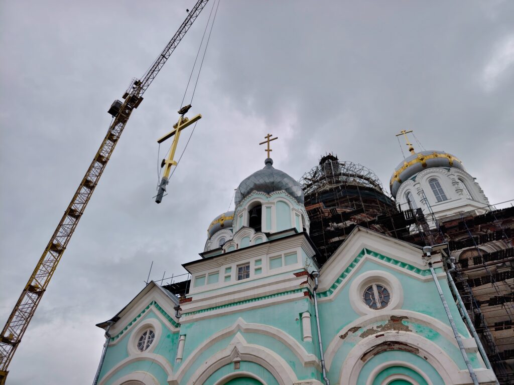 После молитв и окропления святой водой сияющий крест был торжественно поднят и установлен на вершине главного купола собора, возвращая храму его исторический и духовный облик.
