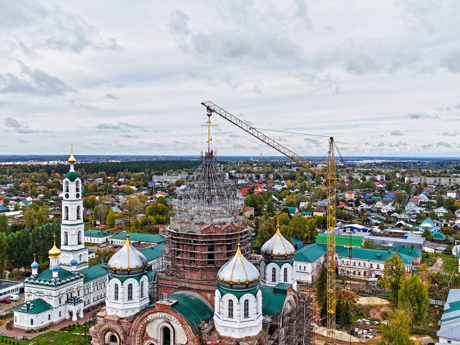 В Выксунском Иверском женском монастыре поднят крест на центральный купол восстанавливаемого Троицкого собора. Торжественный чин освящения прошел на площадке возле храма, его совершил епископ Выксунский и Павловский Гедеон в сослужении духовенства епархии.