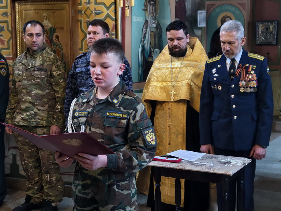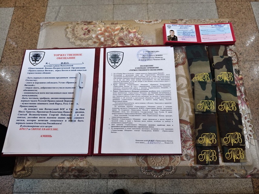 Ритуал Торжественного обещания состоялся недавно в Успенском храме Иверского монастыря. Он был начат молебном. Дающие обещание в парадной форме выстроились в пешем строю. Священник напомнил им значение «Торжественного Обещания» и той почётной и ответственной обязанности, которая возлагается на принявших его на верность своему народу и Русской Православной Церкви. Девять мальчиков пообещали быть верными и неизменно преданными своему Отечеству, соблюдать Устав «Православных Витязей», быть честными, храбрыми, дисциплинированными, верными чадами Русской Православной Церкви.