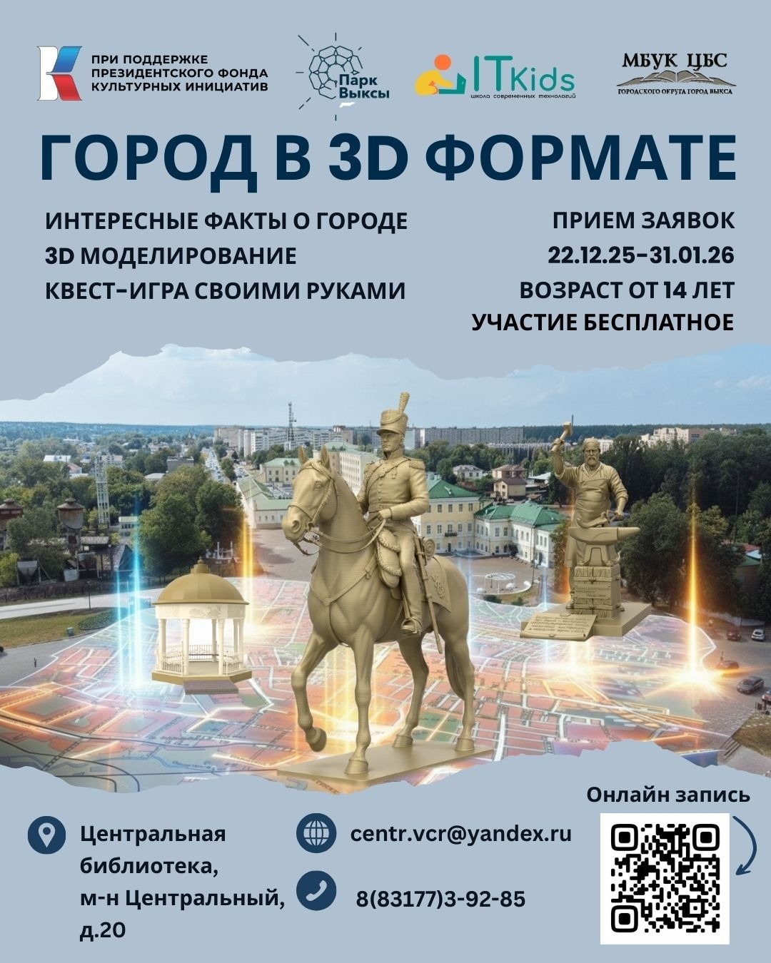 Центральная библиотека приглашает выксунцев в возрасте от 14 лет к участию в проекте «Город в 3D формате».