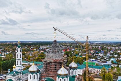 В Выксунском Иверском женском монастыре поднят крест на центральный купол восстанавливаемого Троицкого…